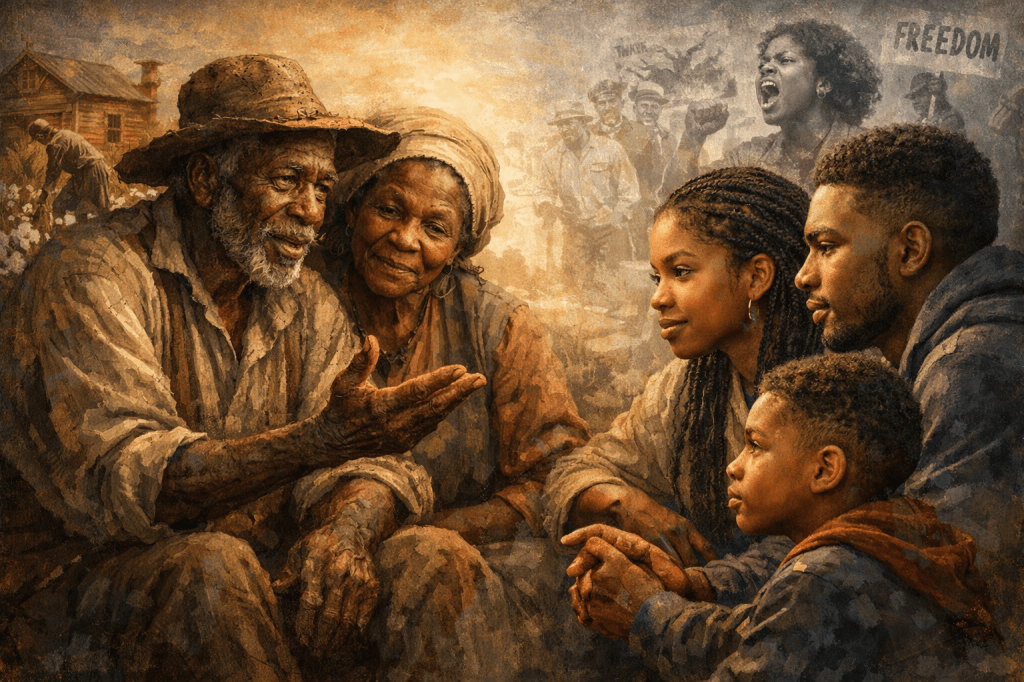 Mēs esam radošuma radītāji un radīsim savu veidu, kā dalīties savā patiesībā un vēsturē. Mūsu senči bija ne tikai paverdzināti ķermeņi, bet arī gudrības nesēji. Viņu drosme netika izdzēsta; Tas tika nodots caur mūsu asins līniju un mūsu garīgajiem savienojumiem no vienas paaudzes uz nākamo. Viņu izdzīvošana un mūsu izdzīvošana nebija un nav nejauša, tā bija un vienmēr būs apzināta. Viņu balsis nekad netiks apklusinātas, un viņu garu vibrācija vienmēr aizdedzinās mūsu dvēseles būtību. Viņi mums ir iemācījuši, ka mēs neesam nākuši no nekā, mēs esam nākuši no visa iemesla dēļ.